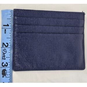 Add a touch of elegance to your everyday essentials with this Furla Navy Blue Leather Wallet! Crafted from high-quality leather, this wallet features a sleek navy blue color and six card pockets for all your essentials. The interior is in excellent condition, with no visible signs of wear or damage. The exterior shows minor signs of use but remains in great shape overall. Perfect for someone looking for a stylish and functional wallet.