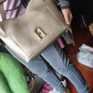 Auth NWT FURLA Primula Small Hobo Metallic Leather Bag.
