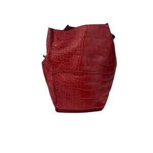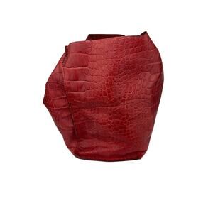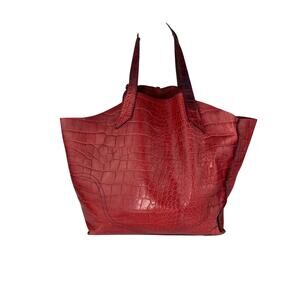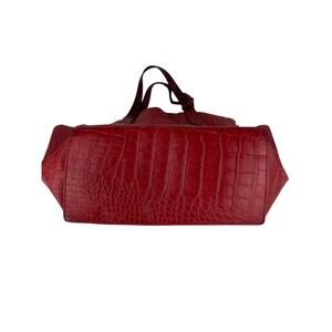 FURLA Red Croc Embossed Leather Handbag with Silver Hardware