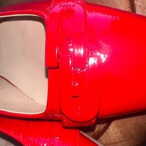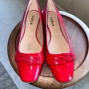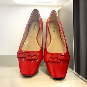 FURLA Red Patent Leather Flat Loafers with FURLA logo embellishment size 8