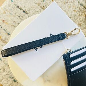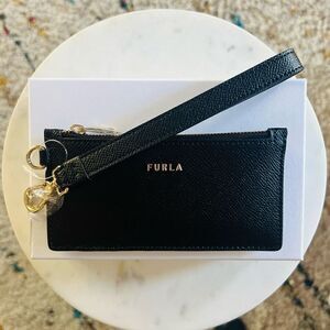 FURLA Classic Credit Card Case Leather Wallet Wristlet, Black, Wrist Strap, NWT