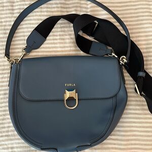 This everyday-essential saddle bag is crafted from fine leather featuring a logo detail. Only wear is on the front grommet as shown in pictures. This bag has not been carried.