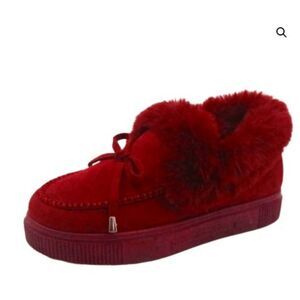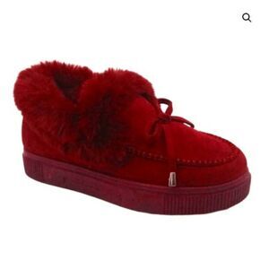 FURRY MOCCASIN | BURGUNDY FUZZY MOCCASIN LOAFERS