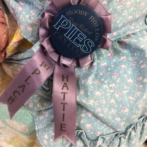 An Original Appalachian Artworks gold signed Xavier Roberts signature. Such an adorable vintage teddy bear with so many features. She’s in great condition with no spots stains or rips. Her forte’ is baking pies so she has the badge and ribbon showing 1st place. What a cute Valentines Day gift for your plush loving pie baker! She has a round tummy with belly button under her dress fingers and toes sewn in plus a soft nose made of felt like fabric. Xavier Robert’s’ signature is sewn on her left foot.