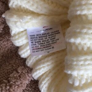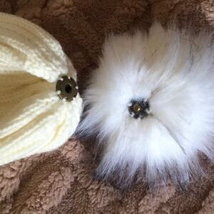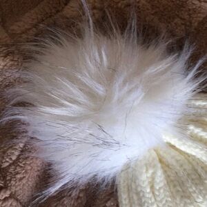 Faux fur removable Pom-Pom. The color is cream like real butter 🧈! No fleece lining.