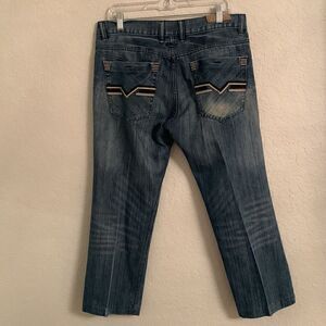 Cotton men’s jeans Decorative back pockets Size: 34/30 Color: light wash Great condition Please see photos for details and measurements