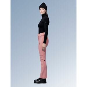 Contemporary sport-chic style and slim fit ski pants creating a slender silhouette. ELANCIA II is crafted from Schoeller® windproof stretch bonded fleece softshell. This fabric provides warmth and the complete freedom to move. Technical details such as a high waistband with adjustment tabs, pre-shaped knees, horizontal hip pockets below the waistband, and zip-up leg opening gusset with gripper elastic complement these elegant pants' functional features set.