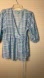 FUTURE COLLECTIVE Plaid Gingham SemiSheer Wrap Top Puff Sleeve L Waist Ties Blue