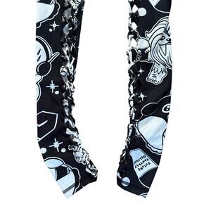 FUTURE FANTASY DELIGHT Slit Weave Graphic Leggings Streetwear Rave Festival Sz M