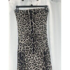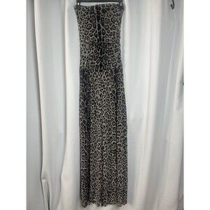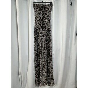 FUZZI Cammello Leopard Print Strapless Mesh Jumpsuit Sz L New
