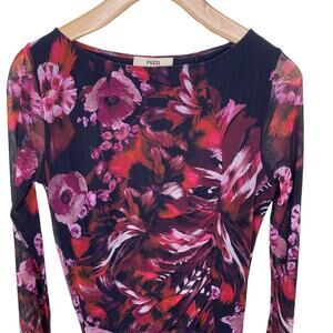 FUZZI Floral Bodycon Tulle Midi Dress Long Sleeve Crewneck Size Medium