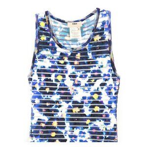 FUZZI Jean Paul Gaultier Sleeveless Round Neck Floral Burnout Stripe Stretch Jersey and Mesh Panels Asymmetric Hem Midi Dress