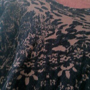 FUZZI Long Sleeve Velvet Sheer Black Burnout Mesh Designer Top Blouse | Size M