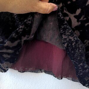 Stunning black velvet burnout pattern over a sheer plum mesh base