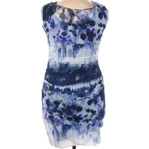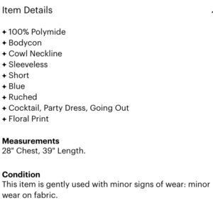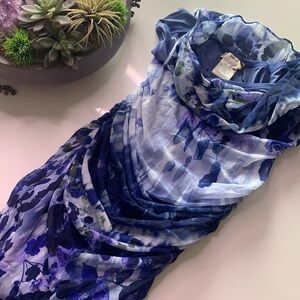FUZZI Rouched mesh cowl neck watercolor blue fitted mesh mini dress xl women’s