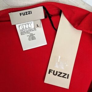 FUZZI Wrap Front V-Neckline Fine Mesh Knit Long Butterfly Bell Sleeves Red L NWT