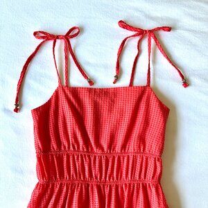 Full length, floaty and tiered, this summery dress has adjustable, self-tie spaghetti straps, an elasticated waist and is crafted with cool, lightweight textured fabric making it ideal for warm weather. Designed by Frankie Bridge for her British collection with F&F in England. Frankie models this design herself on the beach in the photos
