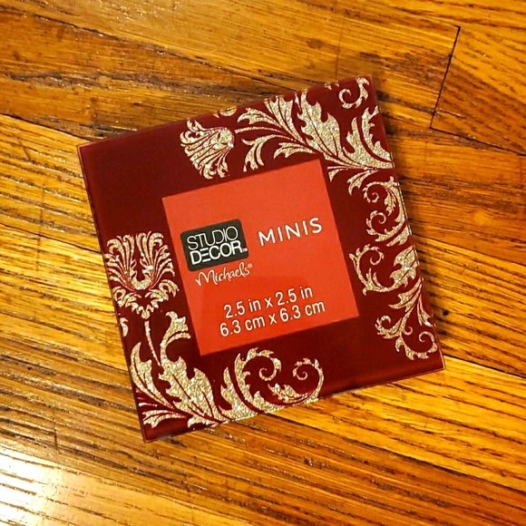 Small acrylic picture frame in excellent condition. Burgundy and silver. Holds 2.5"×2.5" picture. Sorry No Trades 🚫