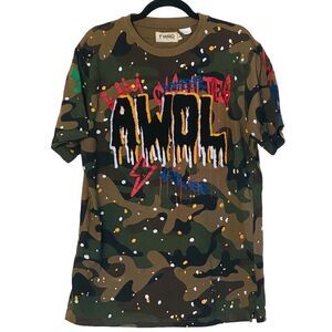 FWRD DENIM Camo Print Splatter Paint Patch AWOL T-Shirt Sz 2XL Runs Small NWOT is new without tags