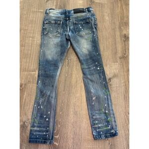 FWRD Denim & Co Kids Distressed Green Paint Splatters Slim Fit Jeans Size 14