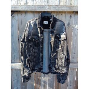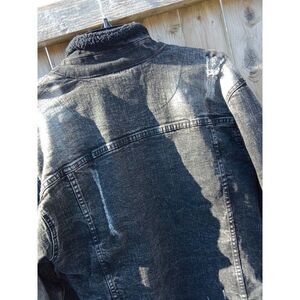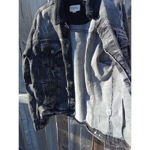 FWRD Denim Jean Jacket Black Distressed Ripped Size XL