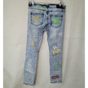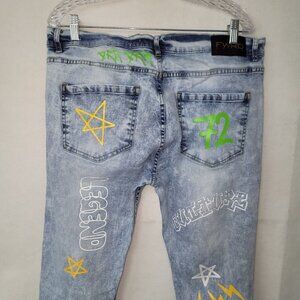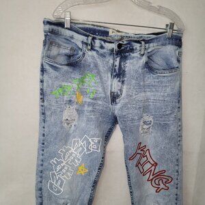 FWRD Denim Jeans Men 36x32 Blue Graphic Distressed Streetwear Grunge King Legend