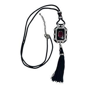 FX by Xavier "Jazz Age" Ruby Red Crystal and Black Enamel Tassel Pendant Watch