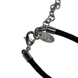 Style/Material: Black enamel, red crystal accents, black satin cord