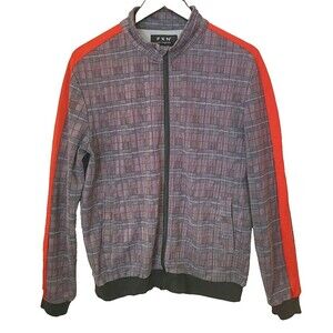 FXN Los Angeles Jacket Mens M Plaid Full Zip Red Stripe Gray Medium Track Casual
