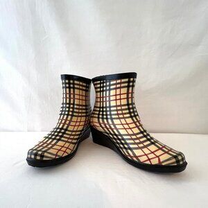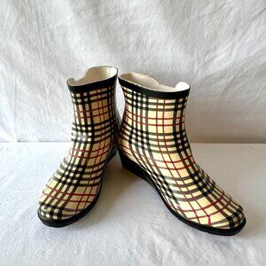 FY (Forever Young) Ankle Rain Boots, Plaid, #RB5203, Slip on, Size 10, EUC!