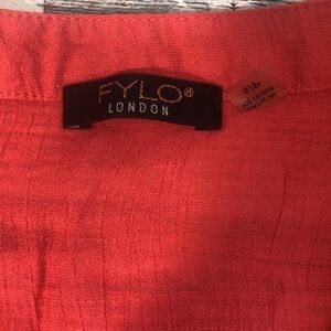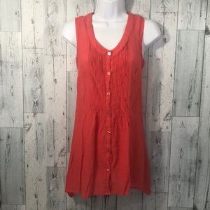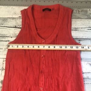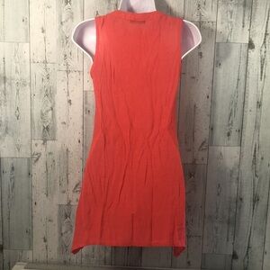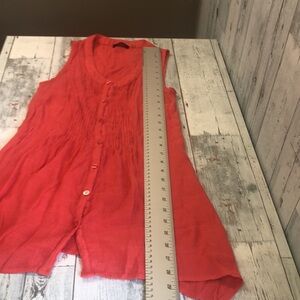 Orange, crinkled fabric, longer on sides, full length button up, light weight fabric, colors may vary due to lighting, Good used condition , Size: S