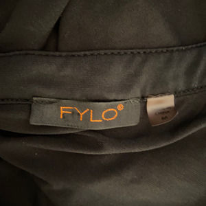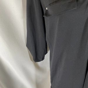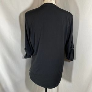 FYLO Woman's Crew Neck 1/2 Zipper Down Roll Up Sleeve Black Stretch Blouse Sz M