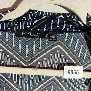 Fylo Women's Plus Size Black & Teal Geometric 3/4 Sleeve Dress Size XXL