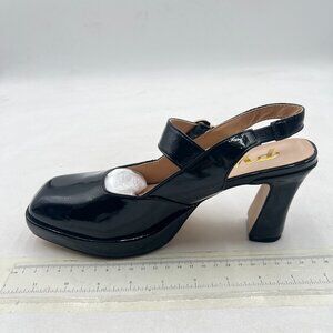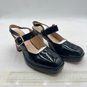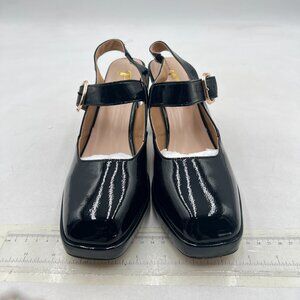 FYS Black Platform Square Toe Pumps Chunky High Heel Mary Janes Slingback Shoes