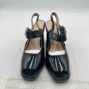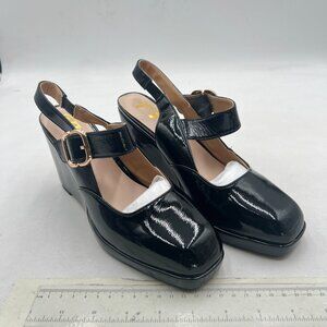 FYS Black Platform Square Toe Pumps Strappy Wedge High Heels Sexy Open Back Dance Party Shoes