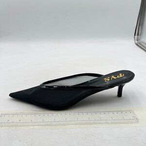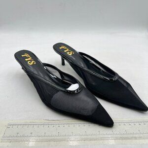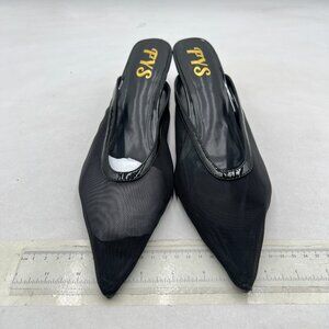 FYS Black Pointed Toe Mules Slip on Low Heels Formal Party Dance Shoes