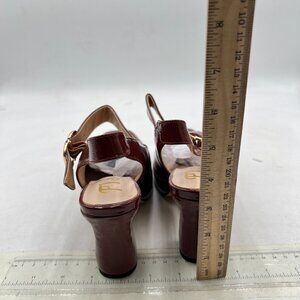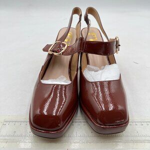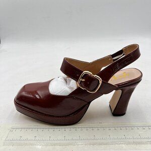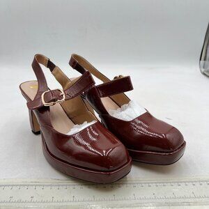 FYS Chocolate Platform Square Toe Pumps Block High Heel Mary Jane Slingback Shoe