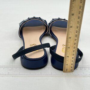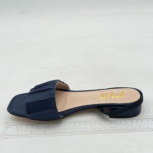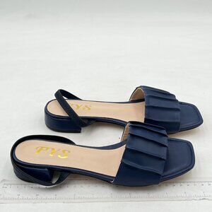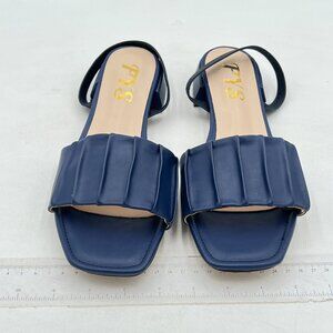 FYS Navy Square Open Toe Slingback Sandals Pleated One Band Low Block Heels Shoe