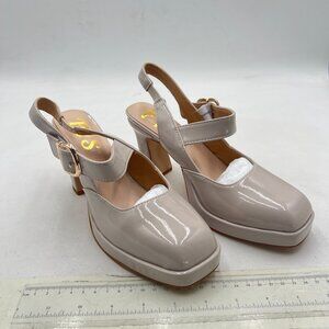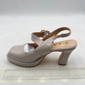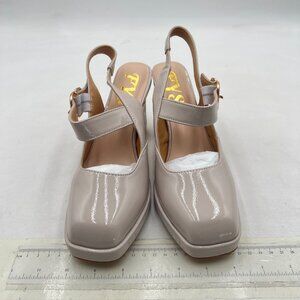 FYS Nude Platform Square Toe Pumps Block High Heel Mary Janes Slingback Shoes