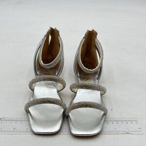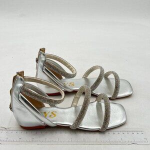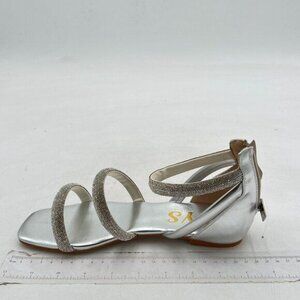 FYS Silver Sparkly Rhinestone Strappy Flat Sandals Ankle Strap Back Zip Shoes