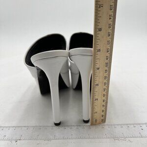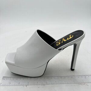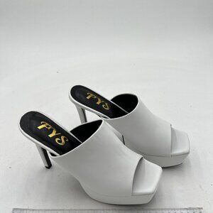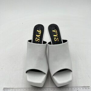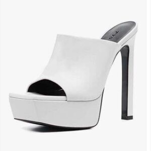 FYS White Chunky High Heel Platform Mules Open Toe Dress Sandals Office Shoes