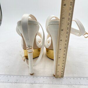 FYS White Sexy Platform Ankle Strap Sandals Peep Toe Stiletto Heels Satin Shoes