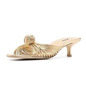 FYS Women Slip on Low Kitten Heel Mules Open Toe Dress Slide Sandals Party Prom