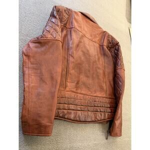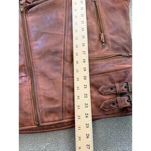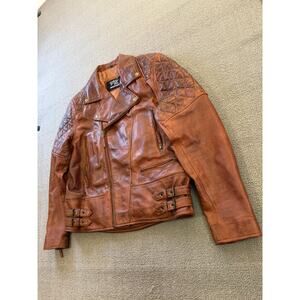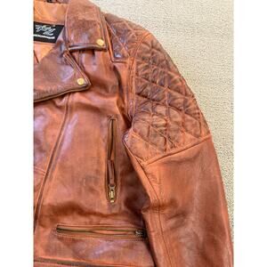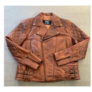 FZ Merchandise Men's Brown Leather Motorcycle Jacket Quilted Shoulders