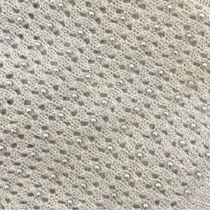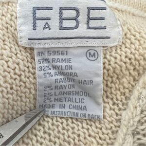 FaBE Vintage Ramie Angora Lambswool Blend Embellished Sleeve Cropped Sweater, MD- Delicate and dainty cream rib knit sweater with contrasting knit pattern sleeves threaded with silver Lurex yarn and beads. All beads are intact.