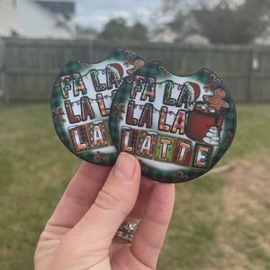 Fa La La La Latte Christmas Car Coaster - Comes in pack of 2 coasters
