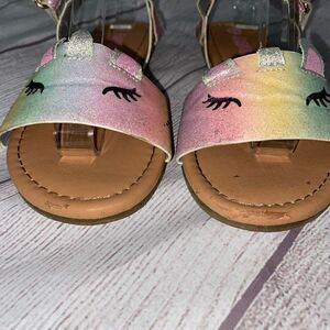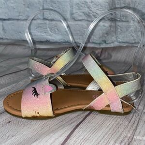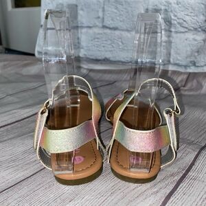 Fab kids girls 13 slip on glitter sandals w/ankle strap closure rainbow/tan