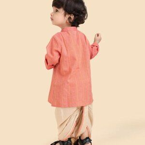 Adorable blue and gold dotted kurta and matching dhoti pants purchased from FabIndia in India. 100% cotton. This set is comfortable and gets so, so many compliments. It is perfect in hot and cooler weather alike.