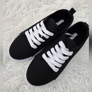 FabKids Lace Up Sneakers Solid Canvas Black. Size 3. New.