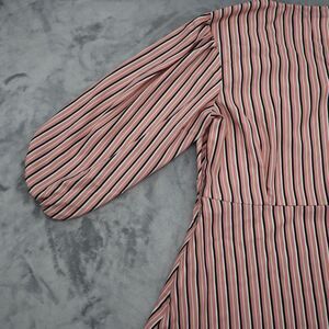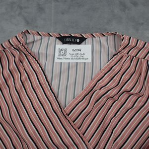 Faballey Shirt Womens L Multicolor Striped Quarter Sleeve VNeck Pullover Blouse